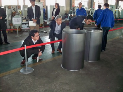 日本钢桶工业协会(JSDA)的会员,共17家,其中钢桶专业制造厂家11家,钢制提桶3家,同时既生产钢桶又生产钢提桶的3家。他们涵盖了日本钢桶行业的整个市场。本次交流团是由日本钢桶行业最具影响力的11家桶厂组成。目前日本200L钢桶年产量约达1400万只,钢提桶年产量约2000万只。JSDA的会员公司产量涵盖了日本钢桶市场百分之百的份额。营口北方作为中国制桶设备行业龙头企业以及长期以来坚持不懈的科技创新精神,尤其是近期设计完成的滚压焊缝机组、及为德国毛瑟公司提供的高科技全自动生产线等引起了他们的极大关注。