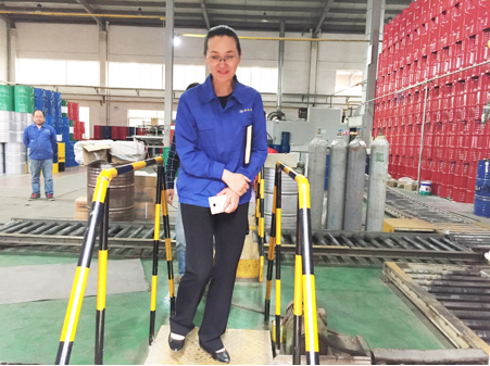 副总经理陈艳霞女士向何总(新安包装)介绍企业情况,公司引进国外具有世界先进水平的全自动钢桶生产线,生产能力达300~400只/小时。冲压线采用联合错位冲压机组,实现了松板、压平、剪切、冲压、预卷自动化生产。制桶线采用丹麦联合精剪机组,英联邦自动电阻焊机确保产品焊缝强度高,尺寸精确。喷涂线采用美国诺信双工位动无气喷涂设备,使产品外观美观,涂层均匀。