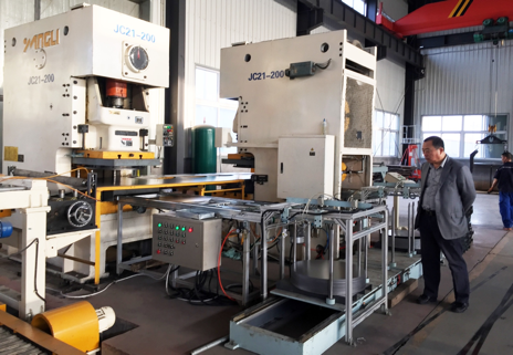 按照通知精神,钢桶生产线是开不起来了,但配套线还可以生产,所以我们又看到了他的创新,目前他为了印铁时钢板无油,新上了擦板机。为了降低生产成本和噪声及职工的劳动强度,对底盖冲压线进行了改造和更新,采用落片冲裁-堆码-拆垛-液压拉伸桶顶底(无噪声)-自动输送-预卷-冲铆桶口法兰。落片冲压桶底顶,解决了整张印涂铁冲压后,下角料无法回收的问题。