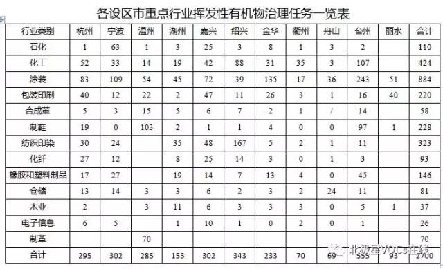 “十三五”期间,全省重点推进石化、化工、工业涂装、包装印刷、合成革、制鞋、化纤、纺织印染、橡胶和塑料制品、仓储等行业VOCs污染防治,地方可依据产业结构特点,因地制宜推进木业、电子信息等行业VOCs治理工作。2017年底前,重点地区应编制地区VOCs深化治理方案,完善重点企业“一厂一策一档”制度。