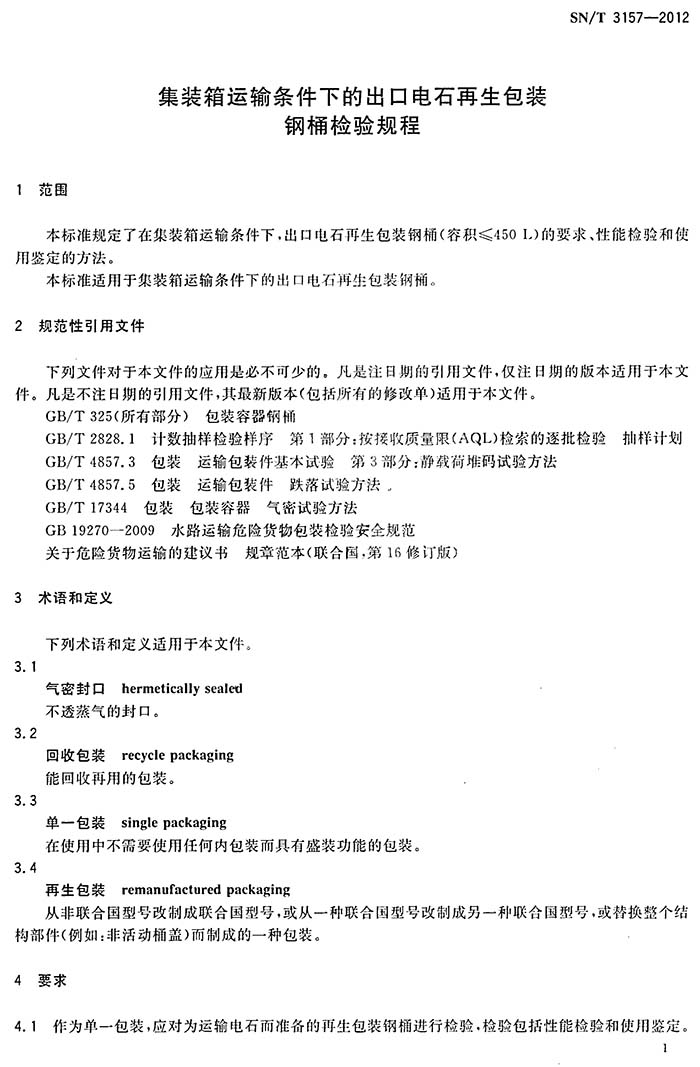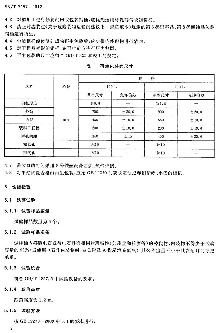 集装箱运输条件下的出口电石再生包装钢桶检验规程
