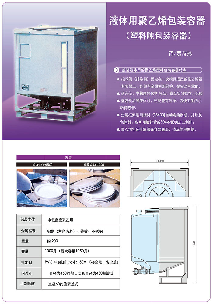 日本液体用聚乙烯包装容器(塑料吨包装容器)