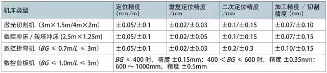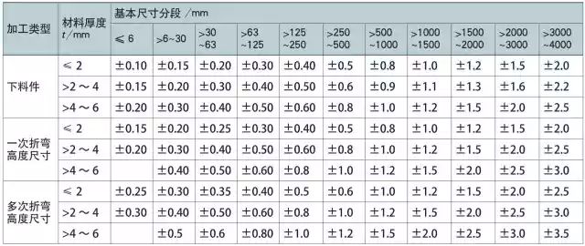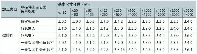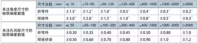 首先,我们了解一下钣金加工用数控设备的加工精度,如表1所示。从表中可以看出,GB/T 1804-m或ISO 2768mK对于激光或数冲下料件在线性尺寸的未注公差方面还基本适用(但尺寸分段并不适合钣金产品),但不适用于折弯或焊接后的钣金件尺寸检查。对于折弯工序之后还有喷涂和装配工序的钣金产品,套用上述两个标准是不科学的,一般焊接结构件的尺寸和形位公差可以参照GB/T 19804-A或ISO 13920-A来执行。