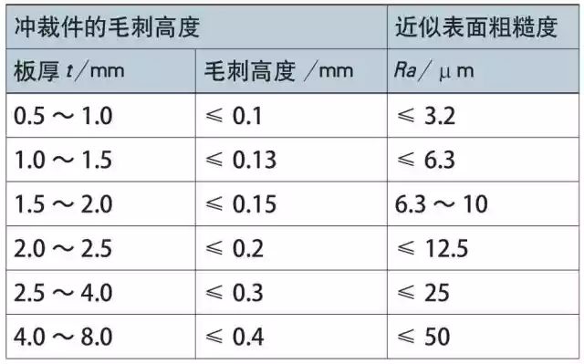 表8 钣金冲裁的毛刺和断面粗糙度要求