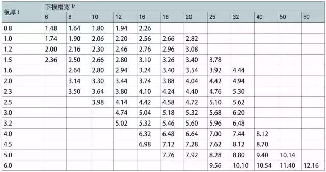 表10 折弯加工常用折弯扣除速查表(SPCC-SS400/90°) (单位:mm)