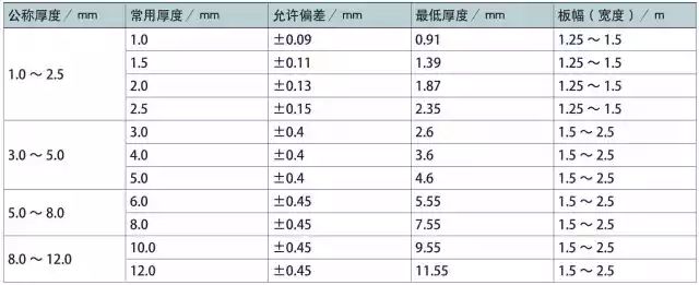 表7 GB/T 709-2006钢板厚度的允许偏差标准