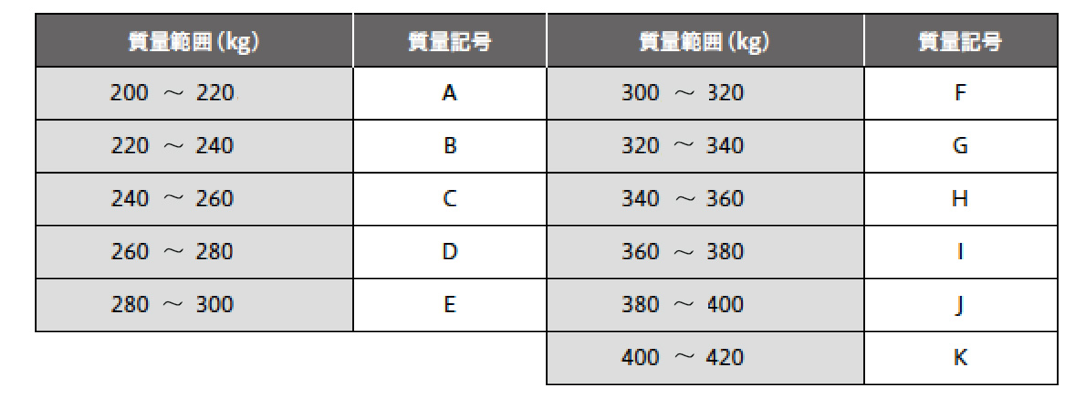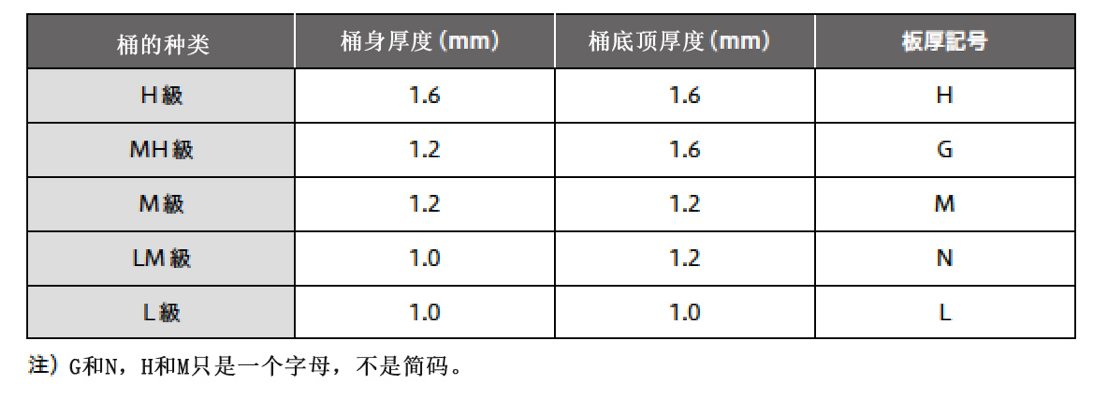 ④ 文字数:桶身与桶底顶板厚的组合,根据下表的板厚符号表示。