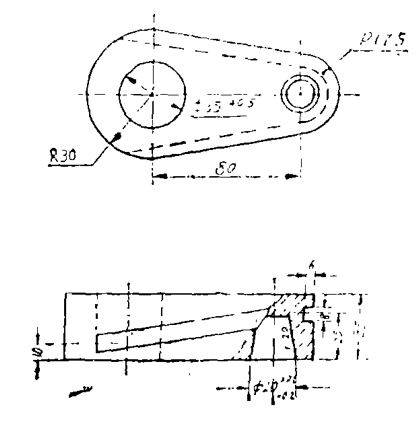 因此,我们特制专用电极夹头,以解决生产问题。如果用原来直夹头,采用图3样式的电极,经试验证明:因为此种电极具有较小的截面积,故冷却条件不好,同时又因电极弯转伸出部位A只有30毫米(太大则变形),所以很快就磨损了,这不仅为更换电极而消耗大量纯铜,还由于电极表状复杂而花费很多制造费用。