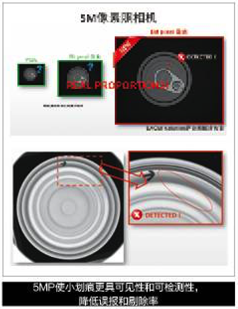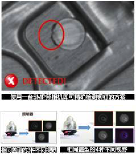5M像素照相机通常安装在视像系统中。其优势为:降低失误剔除率;更小的错误变成可见或“更加透明”;无需安装额外的相机,就能精确检测铆钉。