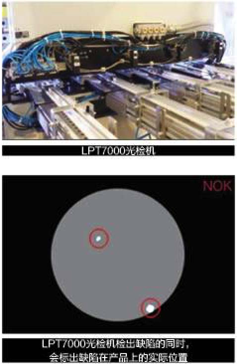 LPT7000光检机,用于冲拔罐泄漏检测。采用菲涅尔针孔光学组件的兴检机,灵敏度极高,罐底部微小至0.02mm的孔洞和侧壁上0.05mm的孔洞均能检测得到。与Ibea所有视觉检测系统一样,设置极其简单方便,工作夹具更换快速。LPT7000光检机可与冲压机集成在一起,故只需占用生产线极小的空间。若冲压机附近空间有限,ibea也可以提供独立的光检机,不与冲压机集成在一起,其检测能力对应冲压机每个通道最高300个罐/分钟。