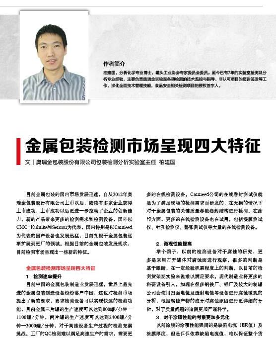 文|奥瑞金包装股份有限公司包装检测分析实验室主任 柏建国