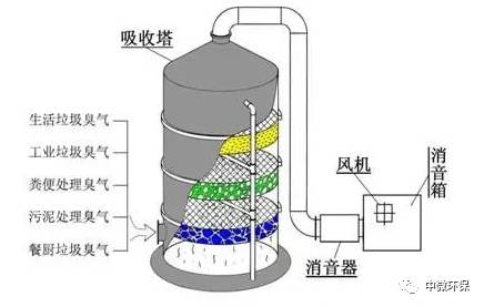 生物洗涤器又叫生物洗涤池,由传质洗涤器和生物降解反应器组成。废气首先进入洗涤器,与惰性填料上的微生物及由生化反应器过来的泥水混合物进行传质吸附、吸收,部分有机物在此被降解,液相中的大部分有机物进入生化反应器,通过悬浮污泥的代谢作用被降解掉,生化反应器出水进入二沉池进行泥水分离,上清液排出,污泥回流。