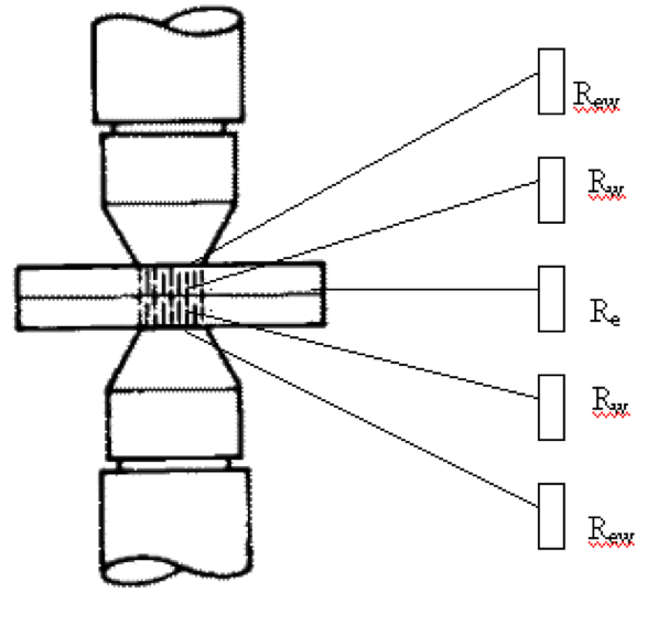 电阻Re为焊件间接触电阻,接触电阻存在的时间是短暂,一般存在于焊接初期,由两方面原因形成: