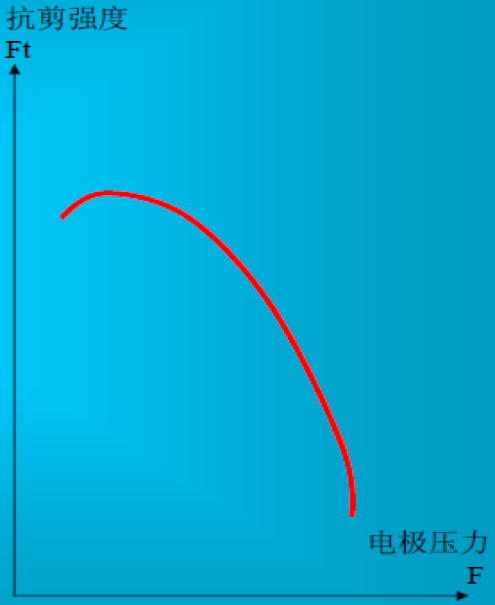 电极压力对两电极间总电阻R有明显的影响,随着电极压力的增大,R显著减小,而焊接电流增大的幅度却不大,不能影响因R减小引起的产热减少。因此,焊点强度总随着焊接压力增大而减小。解决的办法是在增大焊接压力的同时,增大焊接电流,以弥补电阻减小的影响,保持焊接强度不变。电极压力过小,将引起飞溅,也会使焊点强度降低。