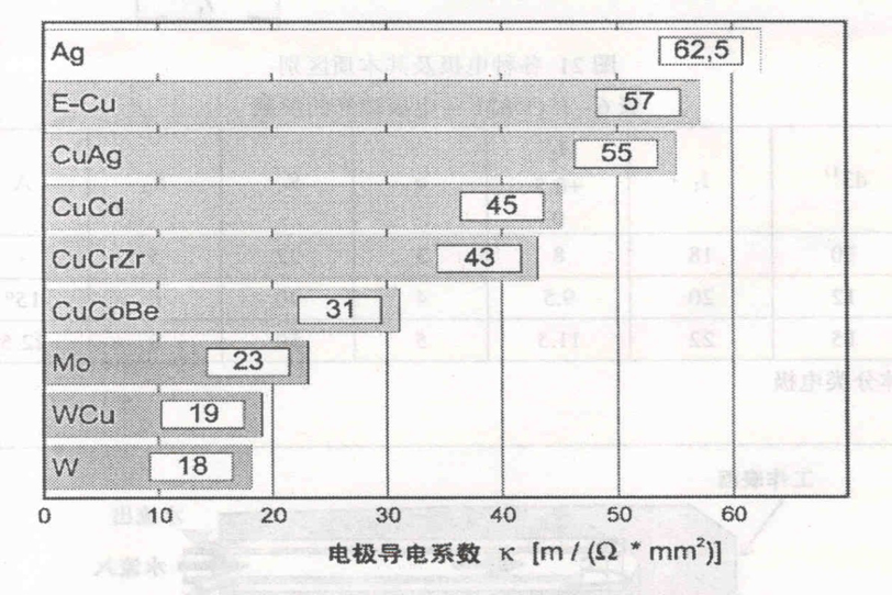 (5)综合性能考量。电极材料主要是铜和铜合金,或钨、钼等。