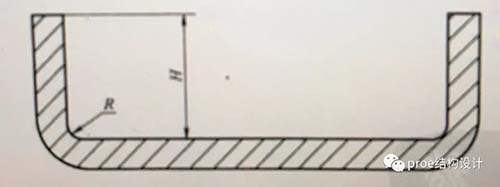 为保证折弯强度,折弯半径应大于材料最小折弯半径,如下图