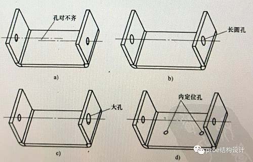 将一个折弯上的孔设计成大孔或者长圆孔,从而允许折弯较大的公差