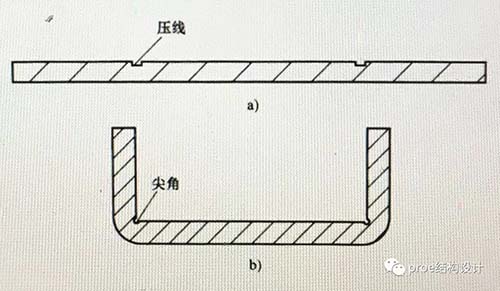 压线工序是强行局部排挤材料,在钣金上面挤出一条沟槽,以利于折弯,确保折弯精度的一种冲压工序