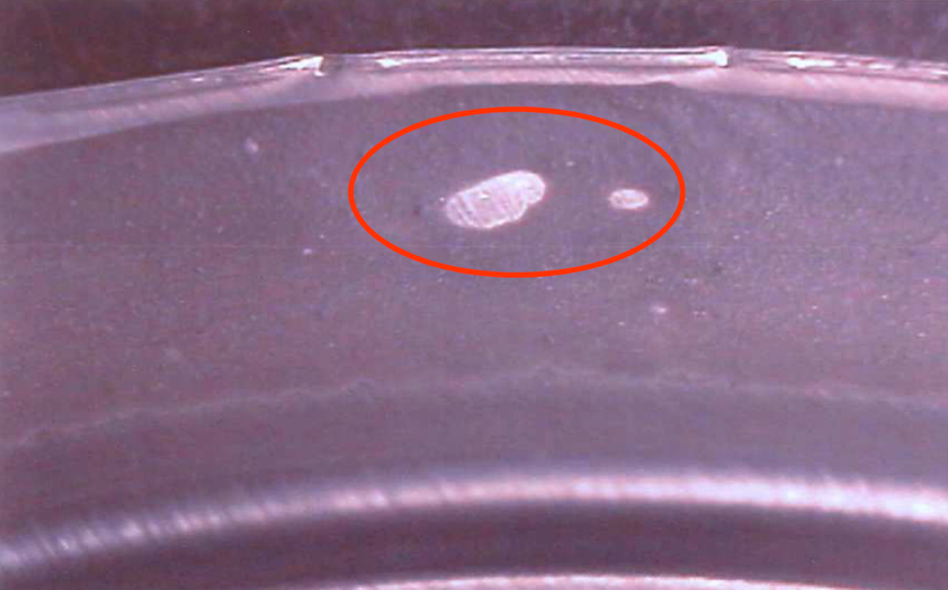 干胶膜中有空气泡由于太高的密封胶流体速率 |