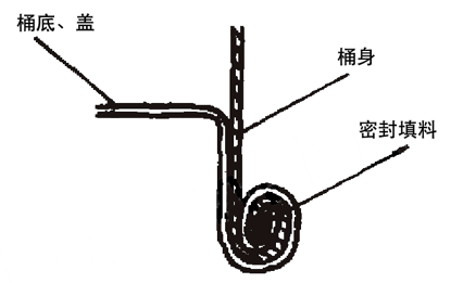 3、桶身翻边,即桶身板边宽度未被桶底、盖裙边包容进去,而是自已翻挤出来,见图2(3);