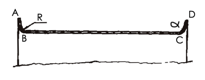桶身扳边工艺的主要参数(见图3):扳边宽度AB(AB=CD),桶身展开长度L,扳边角度α,扳边角弧度R。