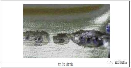 局部腐蚀又称不均匀腐蚀,由于电化学性能的不均一性,如异种金属、表面缺陷、浓度差异、应力集中或环境不均匀等因素,形成局部电池而发生腐蚀。局部腐蚀的阴、阳极可区分,局部腐蚀集中在特定的位置,急剧发生,材料快速腐蚀破坏,马口铁罐的局部腐蚀容易导致穿孔泄漏现象。局部腐蚀呈现多样性特点,根据局部腐蚀造成的破坏形态,可将这类腐蚀分为电偶腐蚀、孔蚀、缝蚀、沿晶腐蚀、磨损腐蚀、应力腐蚀、疲劳腐蚀或选择性腐蚀等主要类型。