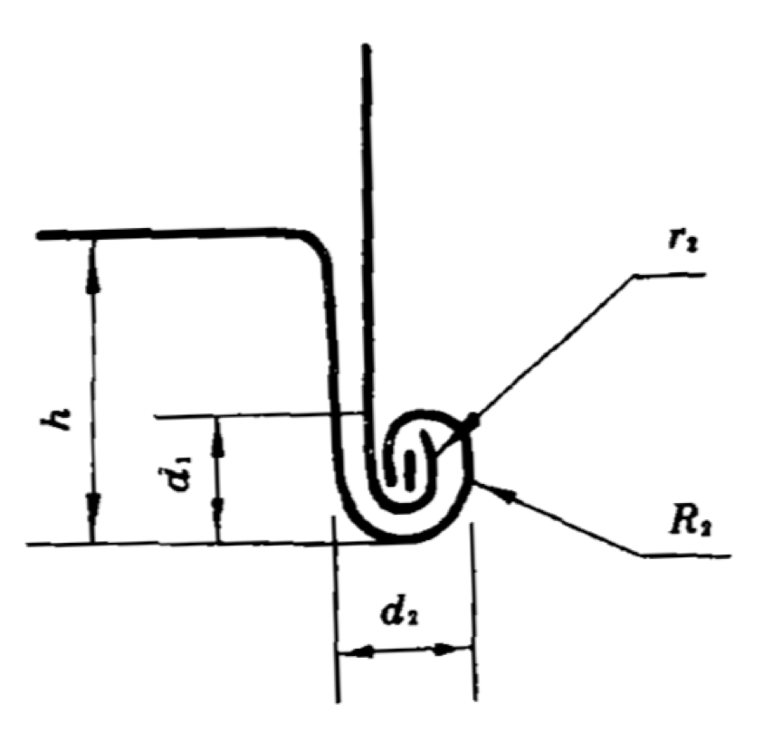 已知薄钢板厚度δ=1.25mm,从上表中可以计算出圆卷边后的平均直径d2=9.9765≈10mm,那么,卷边扣弯曲半很可以计算得: